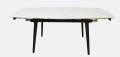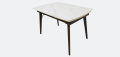 Обеденный раскладной стол Лаго. Столешница выполнена из синтезированного камня - устойчивый, прочный и экологичный материал. Чуть закруглённые углы и белая матовая столешница - беспроигрышный вариант для любой гостиной. По бокам стола расположены дополнительные раздвижные элементы, которые увеличивают полезную площадь столешницы на 30 или 60 см в длину.