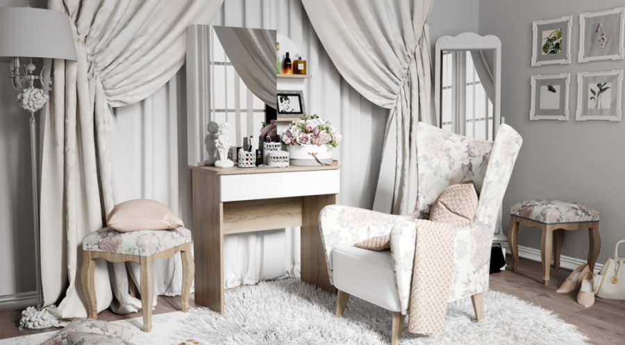 Туалетный столик «Майя» станет модным украшением интерьера и практичным элементом в Вашей квартире. Его конструкция предполагает большое количество мест для хранения, а также останется место для декора, чтобы сделать эту часть комнаты ещё более уютной. Такое изделие прекрасно подходит для того, чтобы оборудовать свой уголок в доме, где Вы могли бы заниматься собой и личными делами, имея под рукой все самое необходимое.