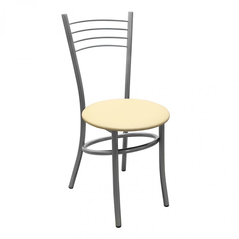 Удобный стул с мягким сиденьем и широкой спинкой, образованной четырьмя поперечными спицами. Прочный каркас усилен обручем, проходящим под углом к плоскости пола. На концах ножек пластиковые заглушки для предотвращения царапин. Подходит для дома (кухни), кафе, столовой, бистро.