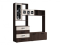 Оснащена комодом, тумбой под ТВ, стеклостворкой под книги или посуду и полками под различные мелочи.