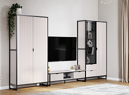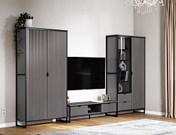 Коллекцию модульной гостиной "Нора" отличает современный оригинальный стиль. Декоративная продольная фрезеровка на фасадах из МДФ и опоры на металлокаркасе цвета соответствуют модным тенденциям этого года в ведущих зарубежных коллекциях.