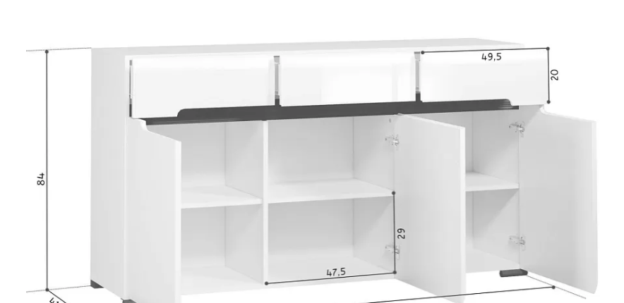 В ней есть место для крупных и мелких вещей, а верхняя часть просто создана, чтобы ставить на нее красивые вещи. А белый фасад с эффектным глянцевым блеском выглядит легко и изящно. Контрастная декоративная вставка на глянцевом фасаде отлично гармонирует с ножками аналогичного оттенка и подчеркивает принадлежность к современному стилю.