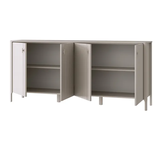 Преобразите своё пространство с четырёхдверной тумбой из коллекции «Далия»! Эта модель — воплощение современного минимализма: лаконичный дизайн, продуманная конструкция и изысканная детализация делают тумбу идеальным выбором для гостиной, спальни или прихожей.