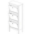 Компактная тумба для обуви высотой 127 см и шириной 55 см предназначена для вертикального хранения шести пар обуви на низкой подошве и небольшом каблуке. Ее глухие дверцы надежно защитят ее от пыли и лучей солнца. Для большей устойчивости такую обувницу следует закрепить к стене специальным крепежом. В комплекте есть необходимый набор фурнитуры.