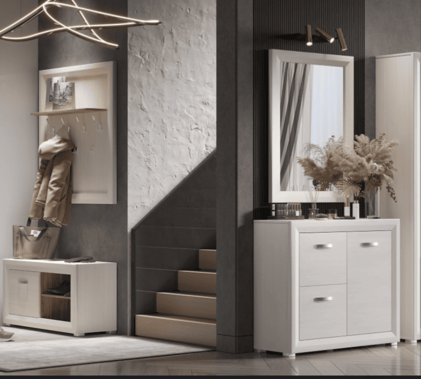 Основным конструктивным материалом при производстве тумбы для обуви Malta является ЛДСП. Он не размыкает при контакте с влажной подошвой, а сама конструкция сохраняет линейные размеры в условиях нестабильного микроклимата прихожей. С ЛДСП легко удаляются следы загрязнений.