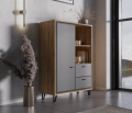 Напольный комод Grace на металлических ножках – изюминка коллекции белорусского производителя BRW-мебель. Его отличает оригинальная конструкция, в которой распашную дверь гармонично дополняют ящик и открытые отделения. Модель с высотой 138 см, шириной 97 см и глубиной 41 см легко вписывается в небольшое пространство и создает вместительный блок для хранения вещей.