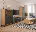 Тумба Grace с элегантным графитовым фасадом и каркасом «под дуб» ‑ беспроигрышное решение для современной гостиной.