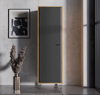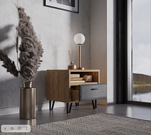 Тумба Grace с элегантным графитовым фасадом и каркасом «под дуб» ‑ беспроигрышное решение для современной гостиной.