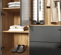 Мебель не должна быть скучной! И тумба Grace – тому подтверждение! Яркая и харизматичная, она создана для эстетического наслаждения и украшения современных интерьеров. Тумба Grace представлена в виде шкафа-витрины с распашными дверцами. Ее гармоничным дополнением являются прозрачные вставки, выполненные из закаленного стекла. Расположенные асимметрично, они создают красивый визуальный эффект и добавляют фасадам легкого шарма.