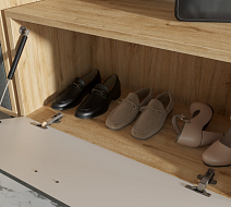 Тумба Grace с элегантным графитовым фасадом и каркасом «под дуб» ‑ беспроигрышное решение для современной гостиной.
