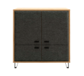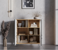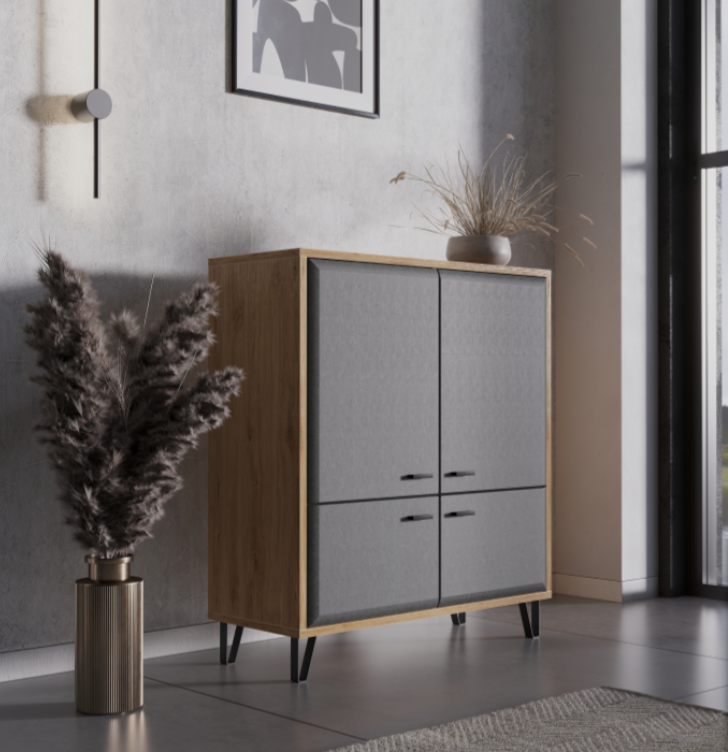 Тумба Grace представлена оригинальной моделью с четырьмя распашными дверцами разного размера. Это визуально легкая и стильная конструкция на металлических ножках имеет высоту 111 см, ширину 97 см и глубину 41 см. Благодаря таким размерам, она компактно разместится в небольшой комнате и даже заменит небольшой шкаф.