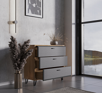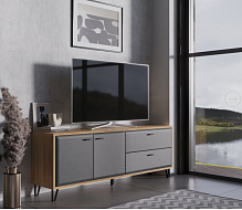 Навесная белорусская тумба Grace шириной 135 см и высотой 41 см компактно разместится на стене и станет прекрасной альтернативой ТВ-тумбе. Эта модель имеет горизонтальное расположение, два ящика и дверцу с полкой внутри. Ее поверхность в древесных тонах, оттененная графитовыми фасадами и черными прямыми ручками, гармонично вписывается в современные интерьеры.