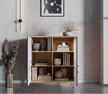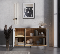 Все гениальное просто! Создавая тумбу под телевизор Grace, белорусский производитель BRW максимально упросил ее дизайн и создал мебель, соответствующую запросам потребителя. Он оснастил ее металлическими ножками, дополнил распашными дверцами, ящиком и открытым отделением для аудиотехники.