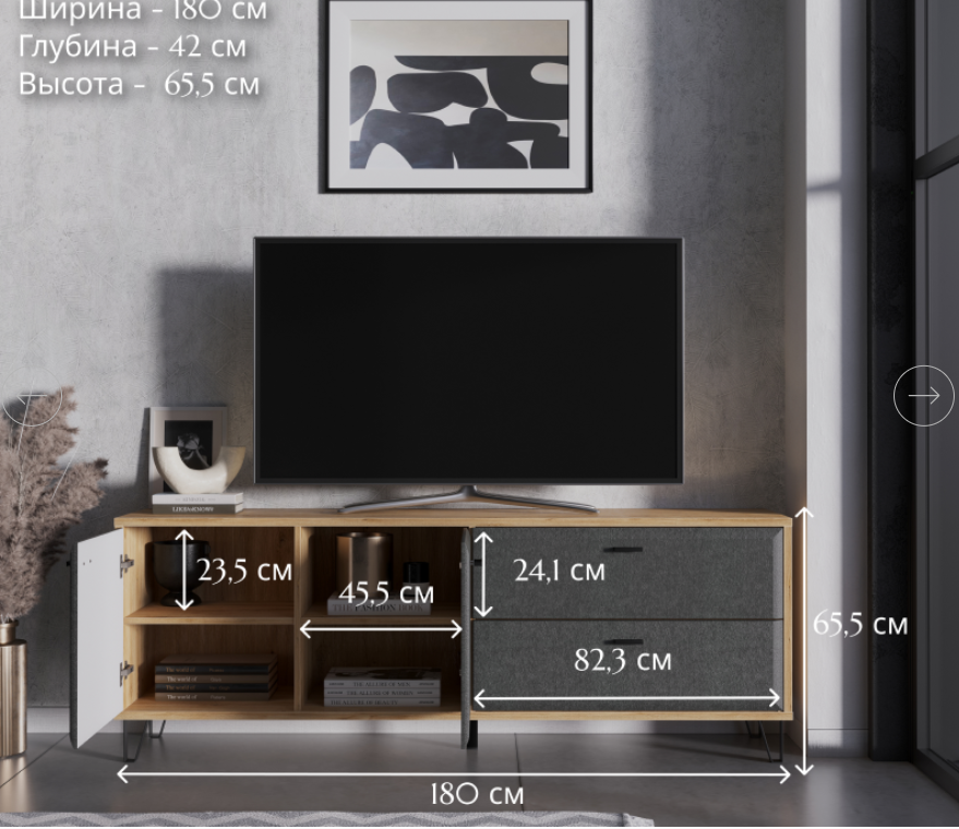 Вдохновленные идеей японского минимализма, белорусские дизайнеры создали мебель, в которой преобладает сдержанность и основной акцент сделали на уюте. Напольная тумба под телевизор Grace содержит просторную рабочую поверхность шириной 180 см, подходящую ТВ любой диагонали и установки дополнительной аппаратуры. Ее глубина 41 см придаст конструкции устойчивость и убережет технику от случайного падения.