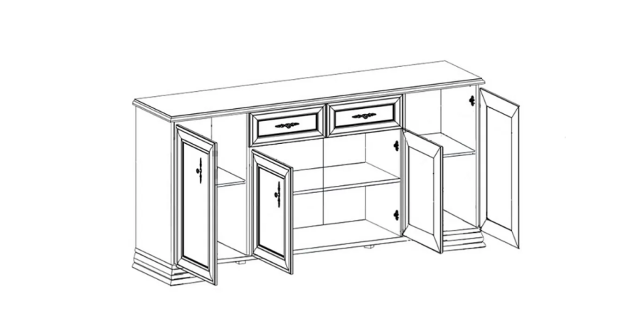 Вместительная и компактная. Эта тумба найдет свое место в абсолютно любой комнате. Распашные дверцы с витиеватыми ручками скрывают просторные полки для размещения необходимых предметов. В них вы можете поместить немнущиеся вещи, книги, журналы, посуду или технику. Два ящика сверху отлично подойдут для хранения канцелярии и негабаритных аксессуаров.