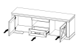 4 отделения: 1 выдвижной ящик на металлических направляющих, открытое отделение и 2 отделения за распашными глухими дверями;