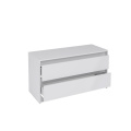 Лицевая фурнитура на тумбе отсутствует. Ящики открываются с помощью захвата рукой.