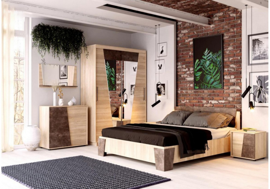 Тумба прикроватная левая ТМ-003 "Санремо" цвет Дуб сонома светлый / Ателье тёмное