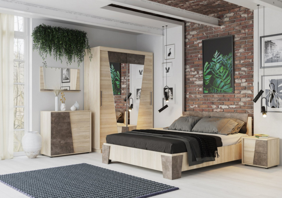 Тумба прикроватная правая ТМ-004 "Санремо" цвет Дуб сонома светлый / Ателье тёмное