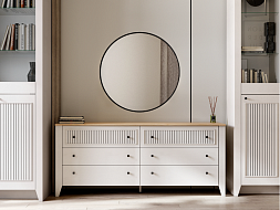 УФ-фотопечать полосок на фасадах в обрамлении пластиковых молдингов придает изделию оригинальный стиль современной классики.