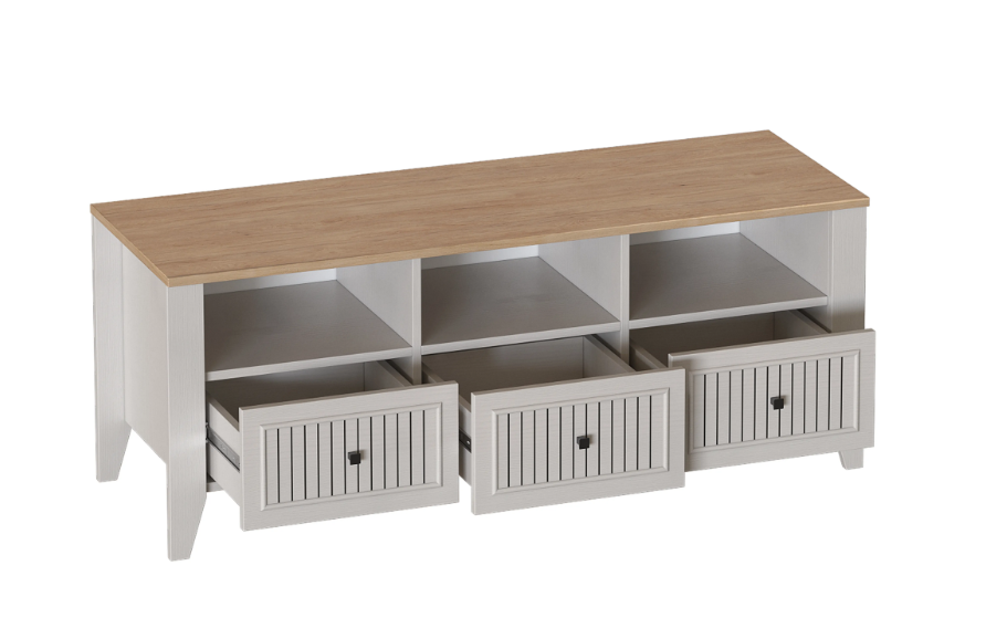 Тумба ТВ 3 ящ "Валенсия" гостиная цвет Персидский жемчуг / Дуб натуральный светлый