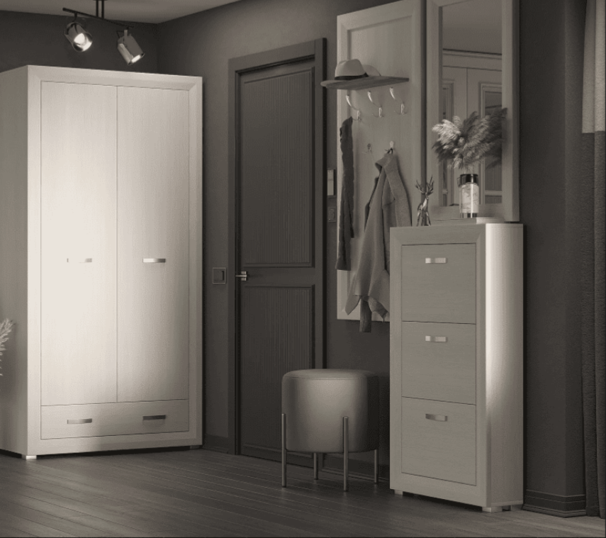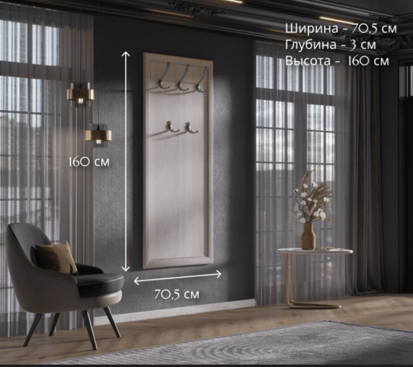 Вертикальная вешалка Malta белорусского производства создана из ЛДСП и МДФ. Ее высота составляет 150 см, а ширина – 70 см. Это практичное решение для прихожей с нестабильными температурами и влажностью воздуха. Такая поверхность легко очищается от загрязнений и не деформируется при контакте с влажной одеждой и зонтами.